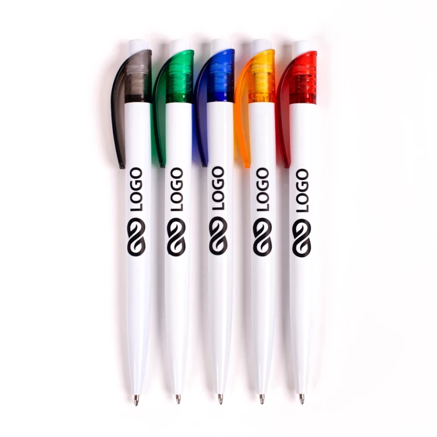 Plastikinis rašiklis "Easy" yra paprastas, tačiau estetiškas ir akį traukiantis reklaminis įtaisas. Jis pagamintas iš balto plastiko, jo viršuje yra dekoratyvinis skaidrus elementas, pereinantis į apvalų, gerai prigludusį spaustuką. Plastikinis rašiklis "Easy" turi standartinį mygtukinį mechanizmą ir mėlyno rašalo užpildą. Ant korpuso galima spausdinti savo logotipą ir įmonės pavadinimą tampografijos arba lazerinės spaudos būdu. Gaminys yra lengvas, patogus laikyti rankoje, tačiau tvirtas ir patvarus. Spausdinti plastikiniai rašikliai "Easy" gali būti jūsų įmonės standartinės įrangos dalis arba tapti nedidele dovana jūsų klientui.