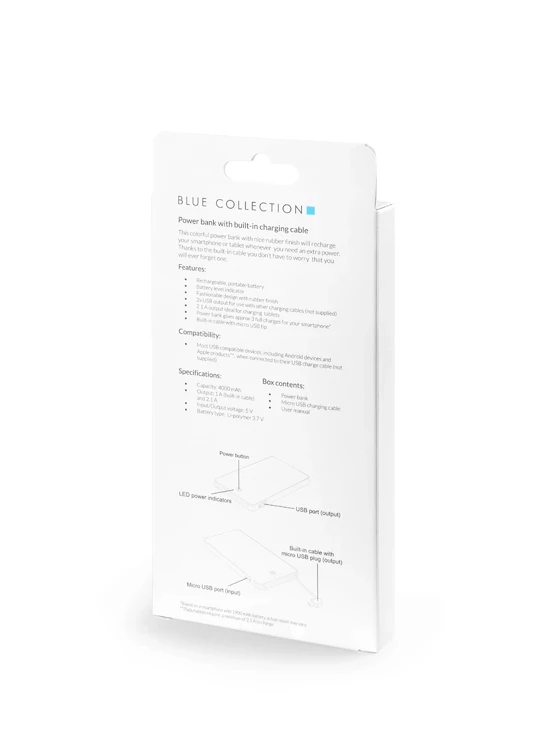 VIVID 4000 mAh maitinimo bankas yra modernus reklaminis įtaisas, kuriame funkcionalumas derinamas su estetika ir kuris yra praktiška dovana klientams ir verslo partneriams. Dėl plono dizaino ir gumuoto paviršiaus prietaisas yra ne tik patogus, bet ir malonus liesti. Integruotas mikro USB laidas ir papildoma USB jungtis leidžia vienu metu įkrauti du įrenginius, todėl padidėja jo pritaikomumas kasdieniam naudojimui. Be to, galimybė ant maitinimo banko paviršiaus spausdinti spalvota UV spauda leidžia efektyviai reklamuoti prekės ženklą.
